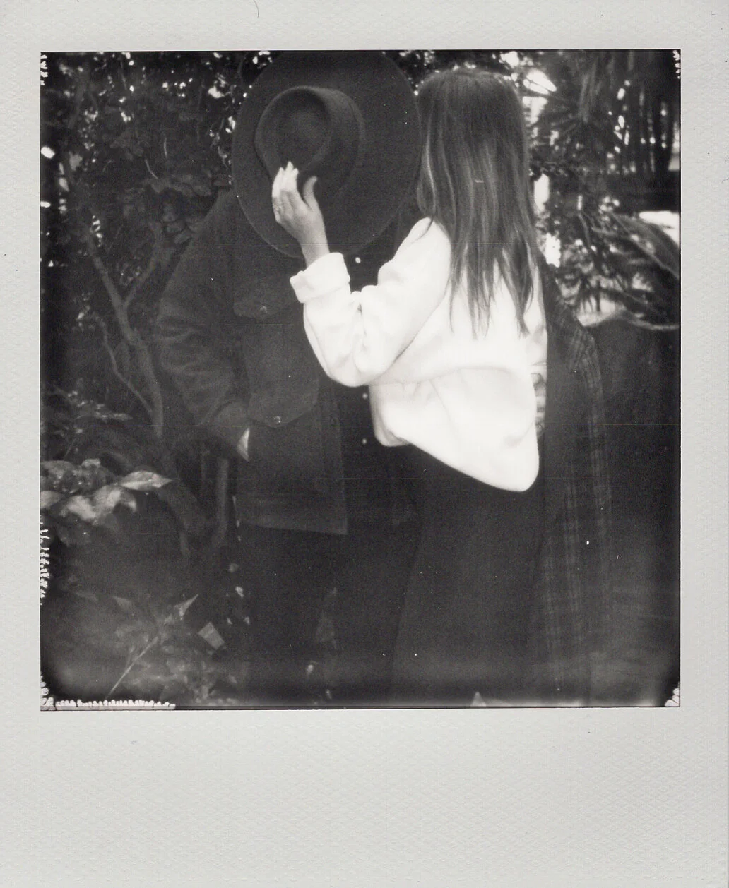 I knew going into the session that I wanted to attempt a double exposure, something I personally never had done with my instant film gear. When I set this shot up I knew what I was going after with the composition. I had envisioned a more solemn side profile of them together + my intention was to layer it with the texture of vibrant plants. It so happened that the plant I was most drawn towards for this cause was the Bougainville you see layered over the portrait of Kaitlyn and Wes. A plant I soon found out is commonly grown in Southern California where Kaitlyn is from. To her this plant is nostalgic and a charming reminder of where she’s from. A tidbit I was not aware of when I shot this double exposure — now that’s serendipity at it’s finest.